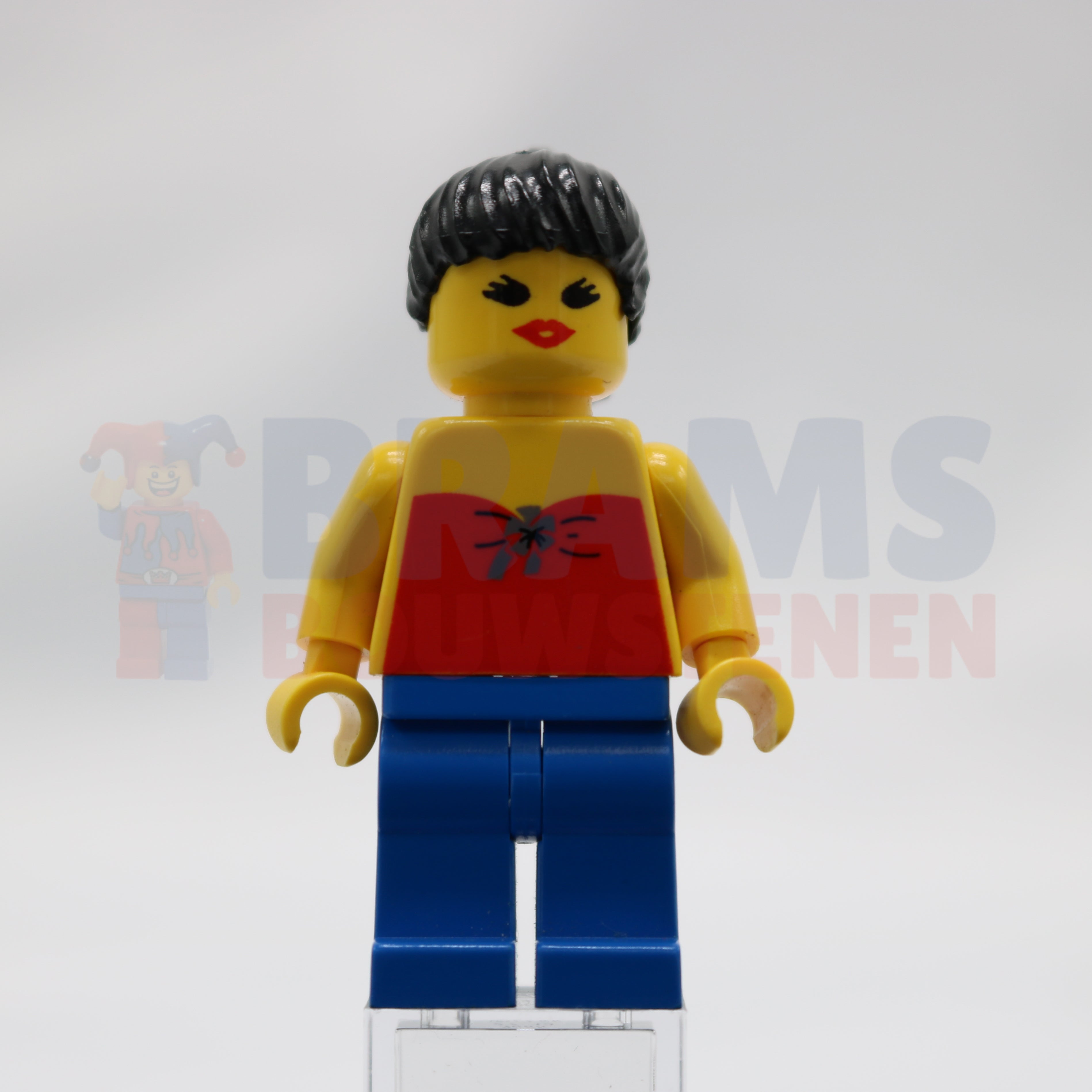Minifig par050 - Red Halter Top - Blue Legs, Black Ponytail Hair, Open Mouth -