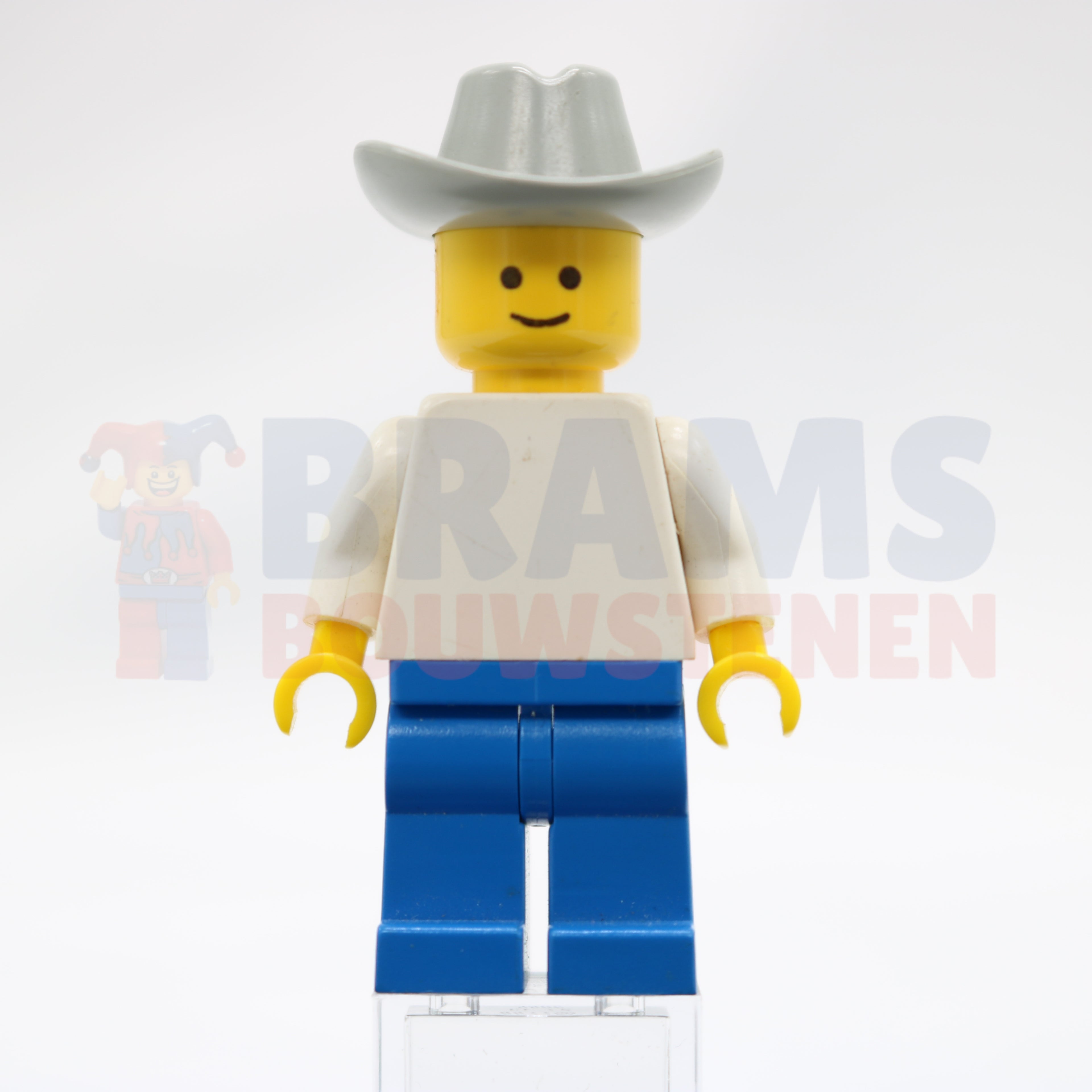 Minifig pln078 - Plain White Torso with White Arms, Blue Legs, Light Gray Cowboy Hat -